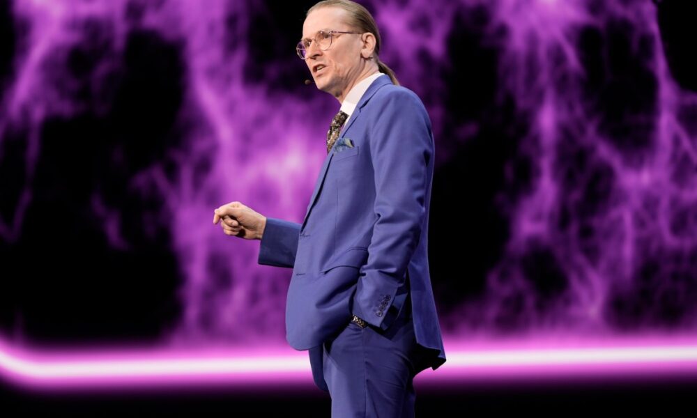 Mikko Hyppönen is pacing back and forth on the stage, with his...
