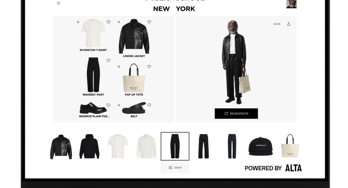 Right now, the company is focused on building app and website integration experiences for brands, she said, where customers can try on a designer’s clothing using a personalized Alta Avatar. This week, the company unveiled its first integration collaboration, teaming up with Public School, a storied New York City brand.