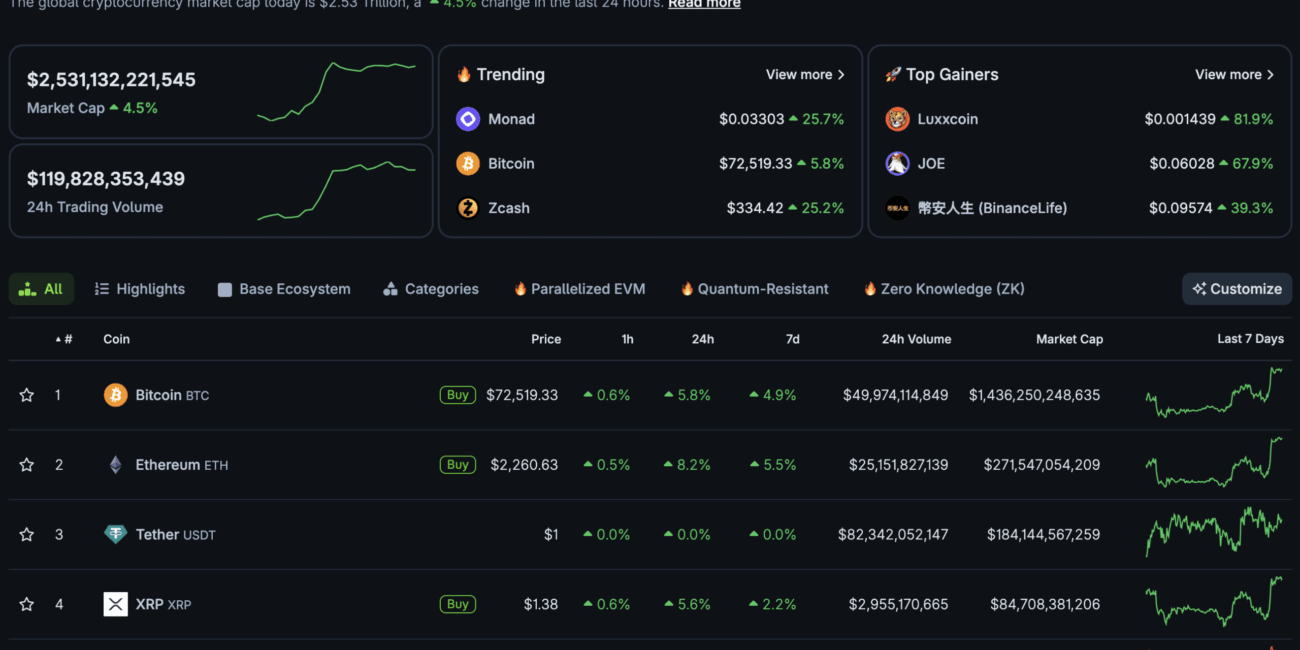 Total Crypto Market Cap Back Above $2.5T: $80K BTC USD Next?